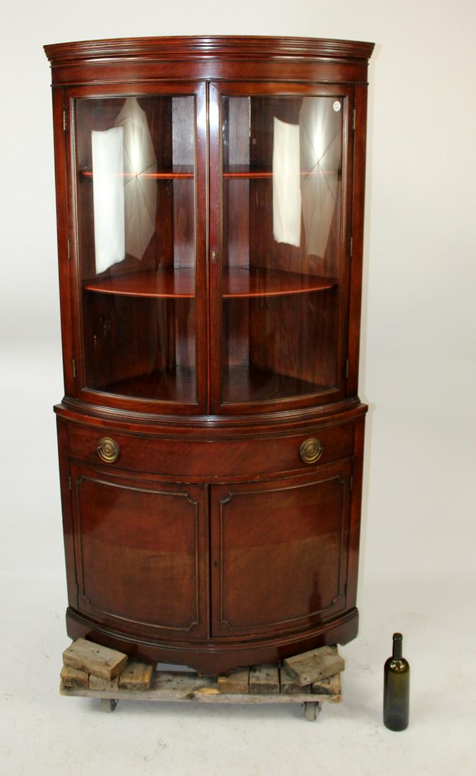 Sold Traditional Curved Glass Vintage Mahogany Corner Cabinet